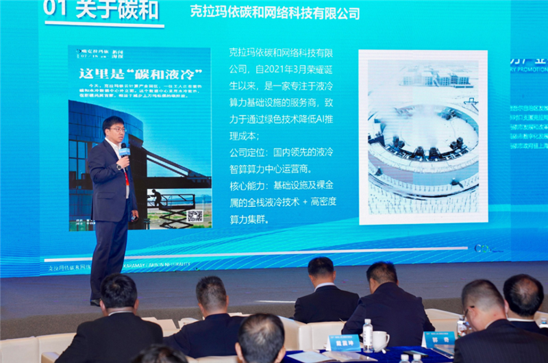 碳和液冷数据中心项目走上克拉玛依(上海)智能算力产业推介会。克拉玛依融媒记者 非尔代维斯·热夏提 摄