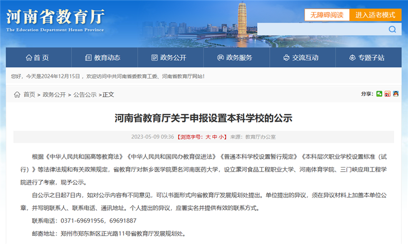 又一所高校,拆分成功!近日,教育部发布《关于同意设置河南信息科技学院的函》。经教育部党组会议研究决定,同意以河南理工大学鹤壁工程技术学院为基础,设立河南信息科技学院。河南信息科技学院为公办普通本科学校